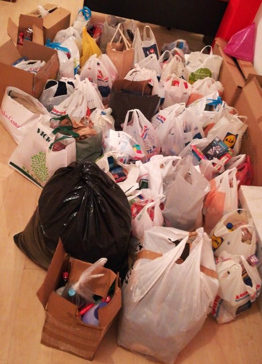 - Οι σακούλες με τα απαραίτητα προϊόντα που σύλλεξαν τα μέλη του Club της Arsenal
